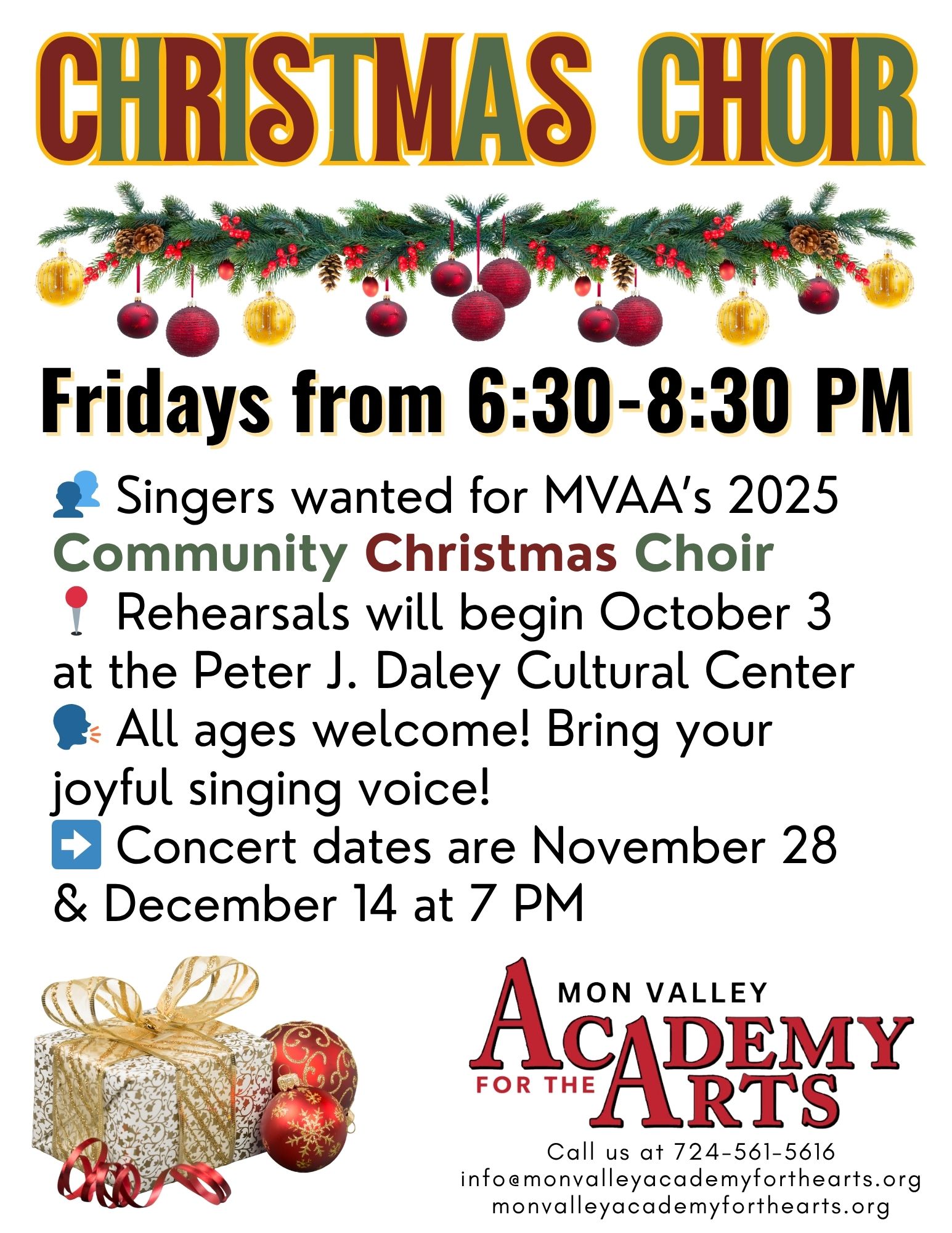 The Mon Valley Academy for the Arts (MVAA) is forming our 2025 Community Christmas Choir! 🌟